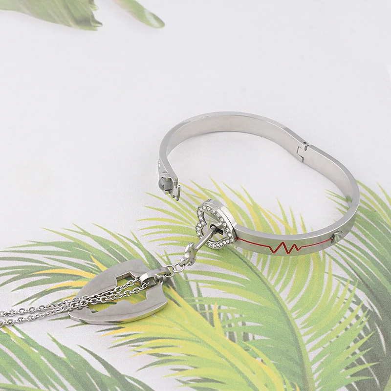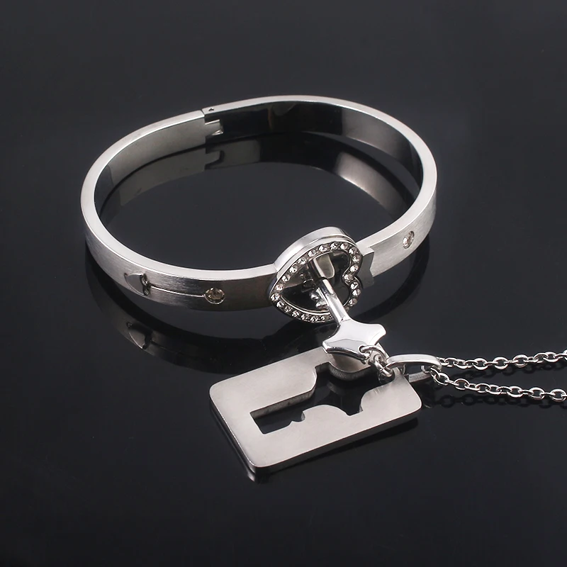Key Pendant Necklace & Bracelet Choker Set – Stainless Steel Jewelry