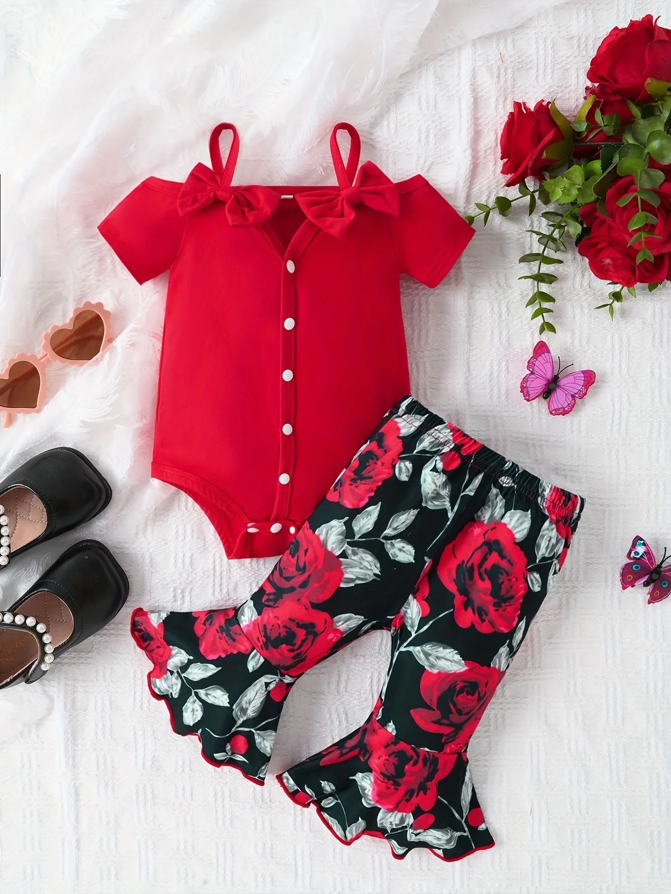 Dress up your little one in this adorable Spring and Autumn style bow strap bag set. Perfect for any occasion, this outfit will keep your baby comfortable and stylish.